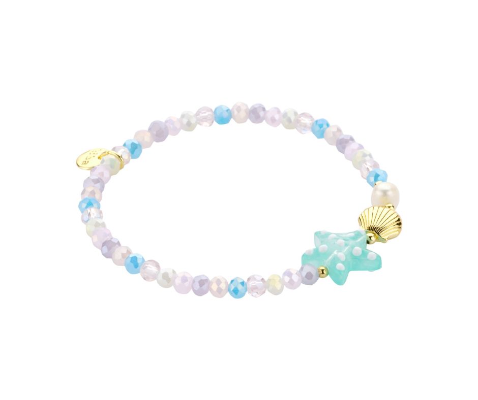 biba armband met schelp - Blauw Mix