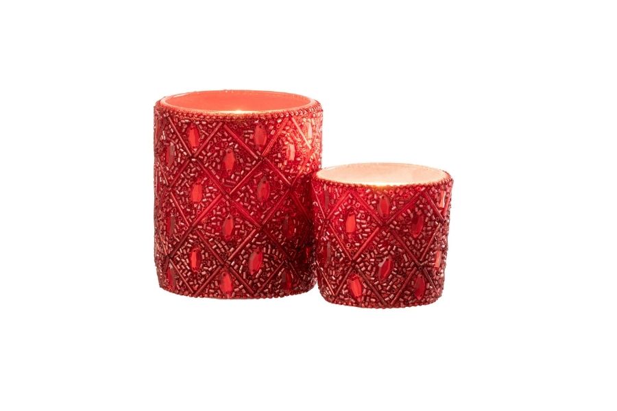 Theelichthouder Glas/Kralen