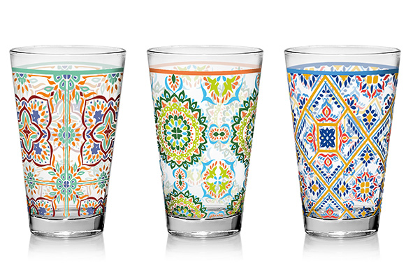 Breng kleur op tafel met de Valentia waterglazen van Cosy & Trendy. Deze set van 3 glazen met een stijlvolle en kleurrijke print heeft een inhoud van 31 cl en is perfect voor water, frisdrank, sap of mocktails. Ideaal voor dagelijks gebruik én voor feestelijke momenten.